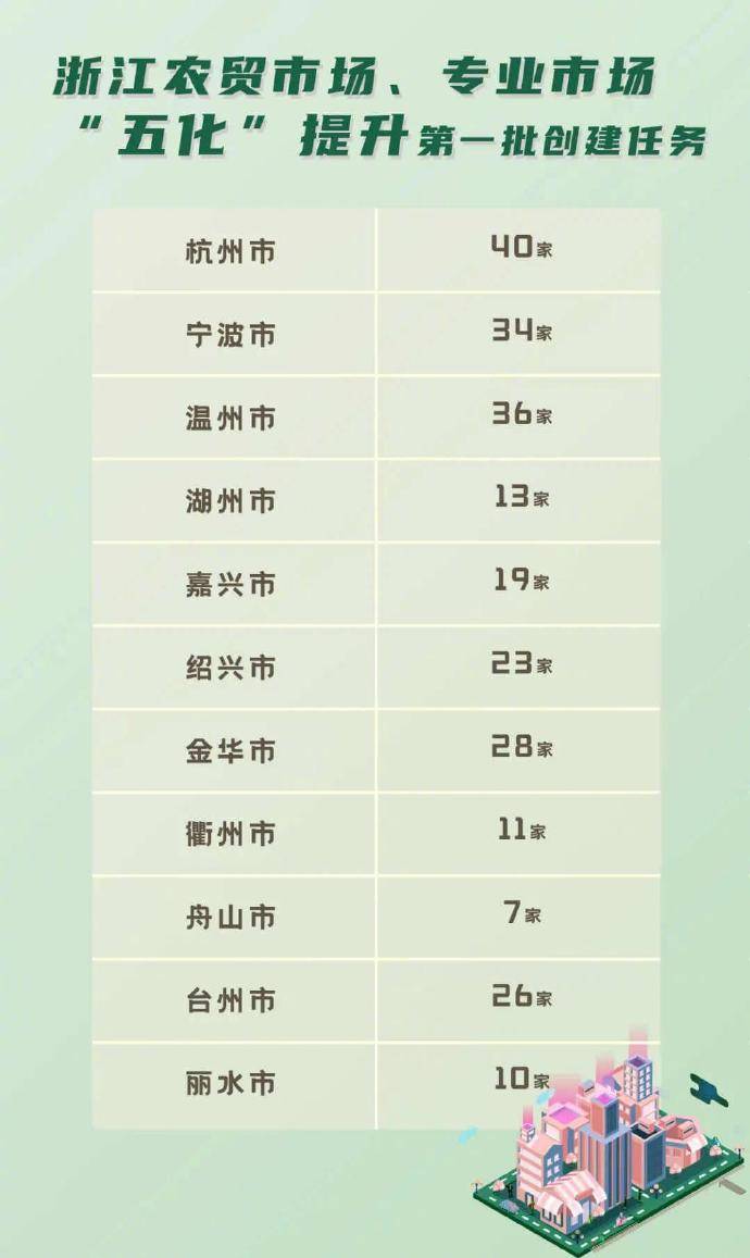 【浙江五星级、四星级农贸市场和专业市场要实现“五化”达标全覆盖】政策解读日前,浙江印发《行动方案》,提出到2021年6月底,浙江将有不少于200家农贸市场和专业市场达到“五化”标准。在2022年杭州亚运会举办前,全省五星级、四星级农贸市场和专业市场要实现“五化”达标全覆盖。第一批创建任务