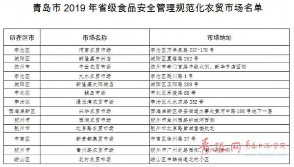 青岛日报/青岛观/青报网讯 近日,山东省市场监督管理局公布了2019年通过省级食品安全管理规范化农贸市场(以下简称“规范化农贸市场”),全省共有76家农贸市场进入名单,其中我市13家,位列全省第一。截至目前,我市共创建两批共29家省级食品安全管理规范化农贸市场。