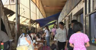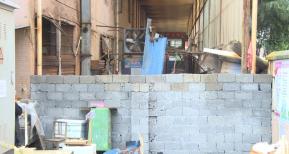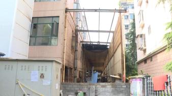 在胜隆商都农贸市场,工作人员对进出口进行水泥砖封口,再在水泥砖隔离墙以外3米处拉上警示带,保证过往行人的安全。施工人员在确保安全的情况下,对存在安全隐患的钢棚进行拆除。
