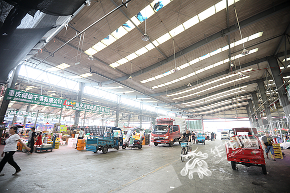双福农产品批发市场水果区,人流、车流络绎不绝。华龙网-新重庆客户端记者 李裕锟 摄