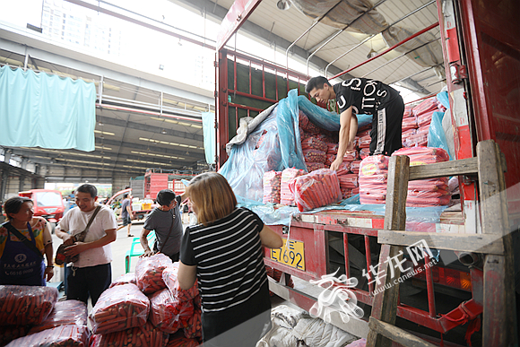 在唐龙炳的摊位里,能看到全国各地新鲜的时令水果,这个季节正是葡萄、西瓜、桃李等水果上市的好时机,订货商们大多都是熟面孔,老主顾们看看询问几句便直接下单。“我们的水果供应商不仅遍布全国,还有不少国外来的水果。”唐龙炳介绍说,像泰国的芒果、缅甸的火龙果等都卖得特别好。“这个季节缅甸的西瓜也卖得特别好,得益于发达便捷的交通,从缅甸的产地采摘下来,到重庆市民的餐桌上,最多只需要五天。”