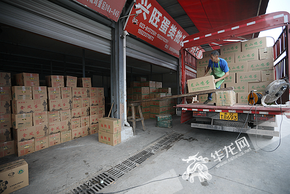 蛋类门市,工人正在将一箱箱鸡蛋卸下货车。华龙网-新重庆客户端记者 李裕锟 摄
