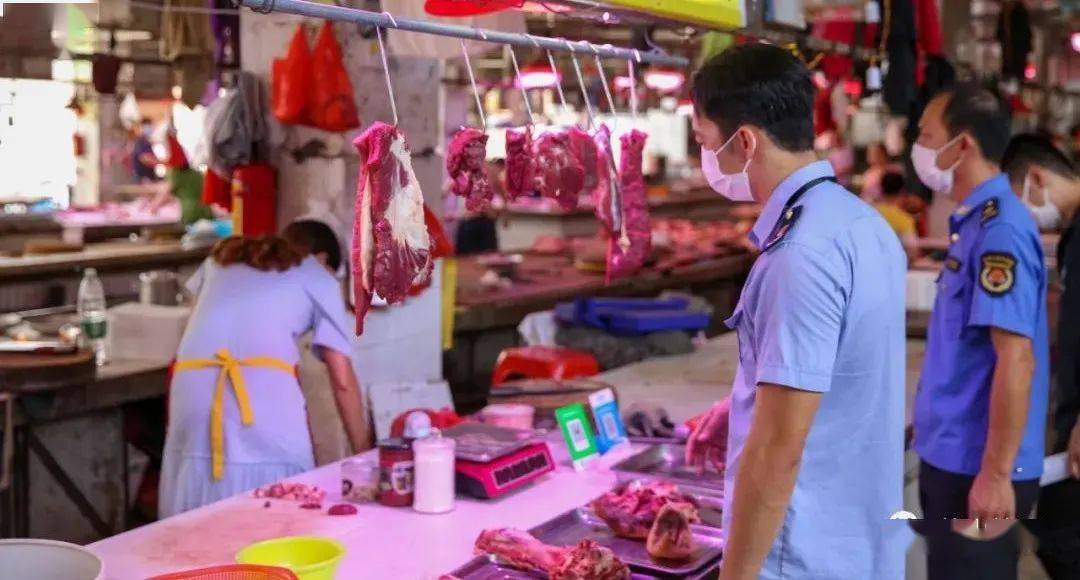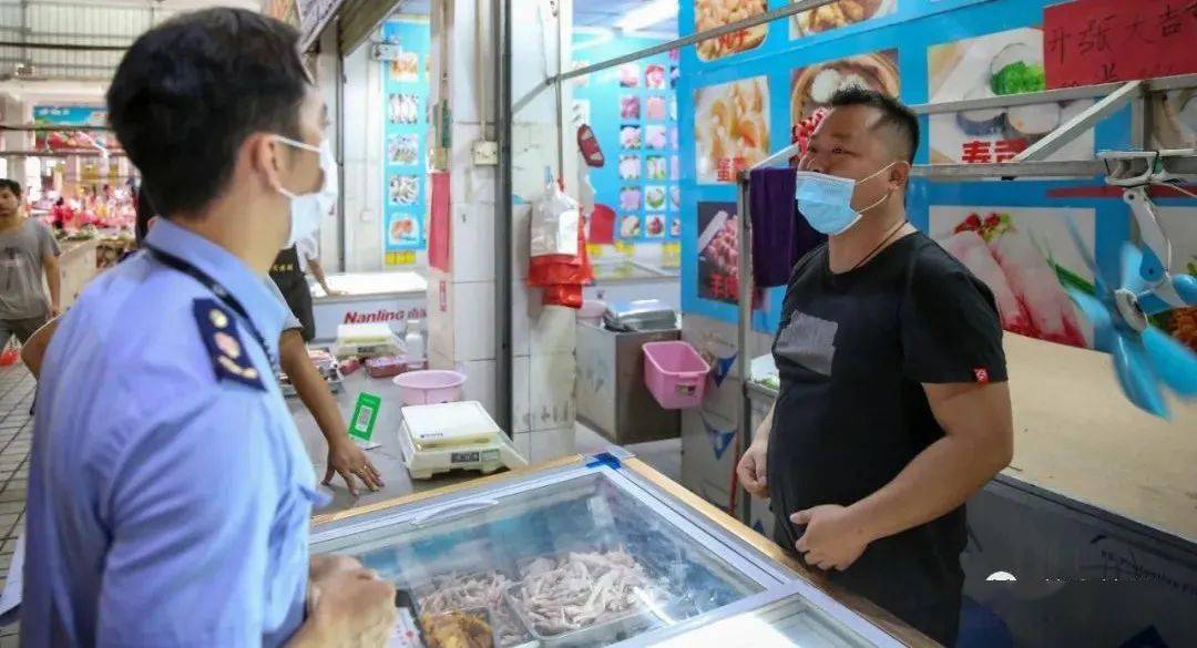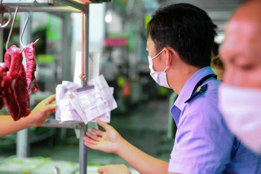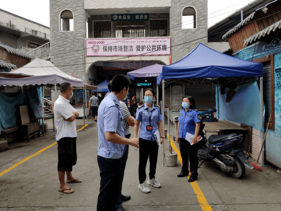 在沙墩市场,检查人员重点检查了农贸市场和摆卖区的宣传氛围、场容场貌、食品安全、证照及日常管理等工作落实情况。