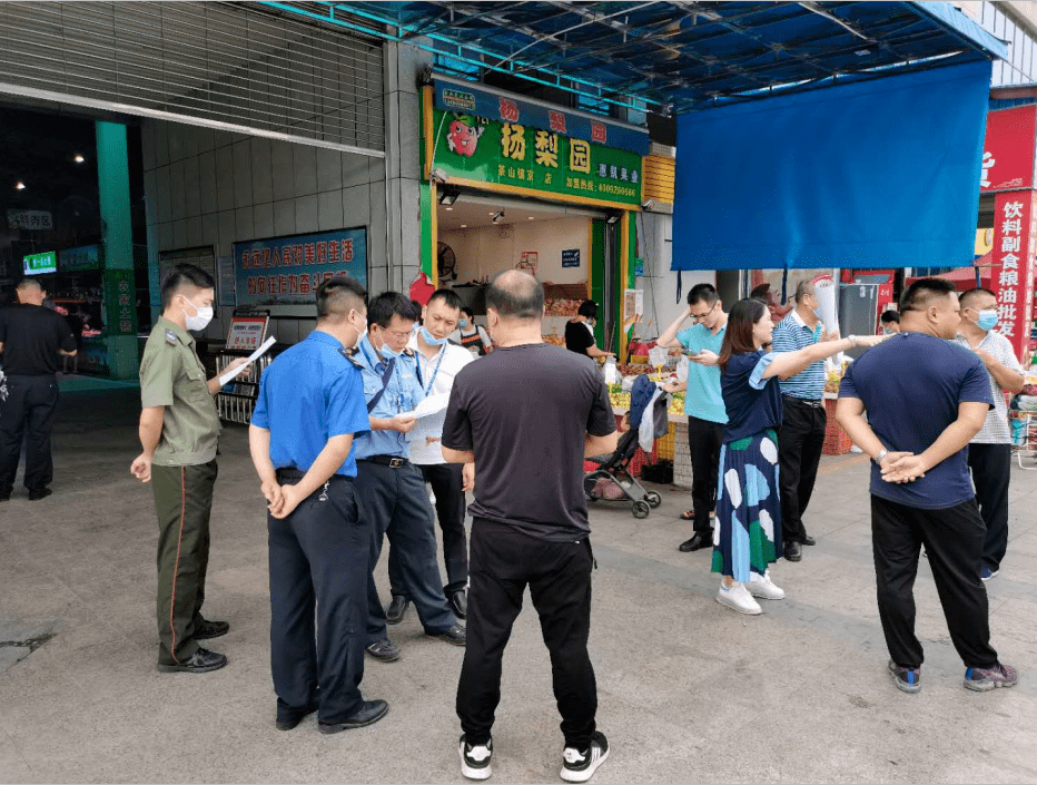 根据《茶山镇农贸市场文明创建综合治理行动实施方案》,茶山镇成立了农贸市场文明创建综合治理行动工作领导小组,由市监、城管、公安等13个单位组成。对茶山14个农贸市场,7个摆卖区进行综合整治,并抽调人员组成工作专班,实行分片包干,对农贸市场开展现场检查,指导农贸市场落实各项工作,跟进解决检查过程中发现的难点问题。