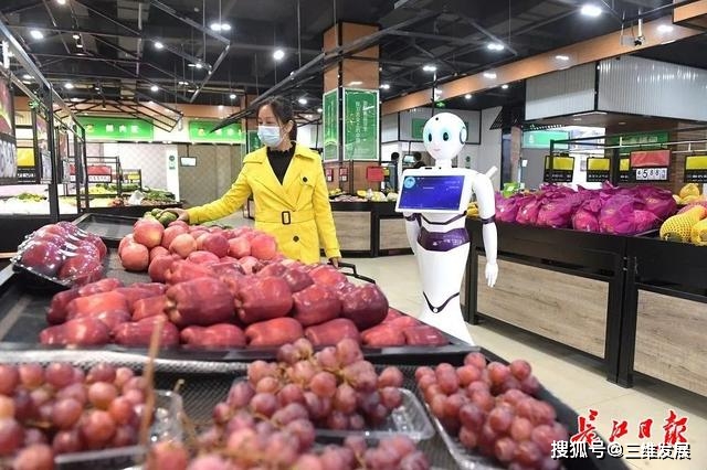 在黄陂区木兰斗笠哥智慧农贸超市,机器人助阵市民买菜。记者刘斌 摄