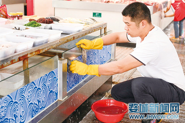 近日,记者来到位于白龙桥镇的叶店菜市场,看到不少摊主正在清洗展台,打扫地面卫生。市场相关负责人介绍,市场的整洁卫生需要所有人一起努力维持,每周他们都会进行三次以上的大扫除。此外,市场每天都会进行抽样检测,并把检测结果公布在市场门口的公告栏上,确保让每一个消费者都能买得开心、吃得放心。见习记者丰懿超摄