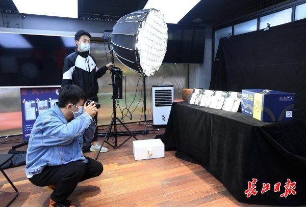 二楼直播间里正拍摄商品。