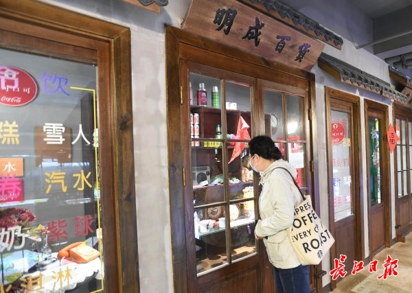 二楼文化长廊摆放的老物件唤起老武汉记忆。