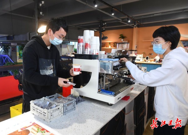 二楼咖啡吧研磨的咖啡满屋飘香。