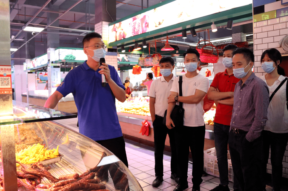 为进一步汲取先进农贸市场的工作经验,本次考察来到了里水沙涌综合市场和禅城领鲜荟华远中心市场。考察组一行人重点了解了沙涌市场内摊位布局规划、肉品“边角料”回收以及熟食档经营环境等,为规范农贸市场交易提供了具有示范意义的经验方法。