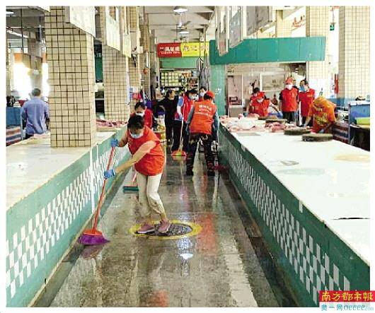 结合防疫和创文工作要求,按照“一个菜市场一支队伍”的原则,坪山区组建了由义工组织、环卫企业、菜市场党群服务站、菜市场经营方、商家等共同参与的菜市场清洁志愿服务队——“卫小二”。“卫小二”通过公众号和微信群招募,大家根据其居住地,就近走进菜市场,协同城管和市场监管部门对菜市场及周边进行清洁,给菜市场彻底清洁。