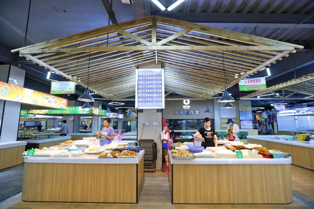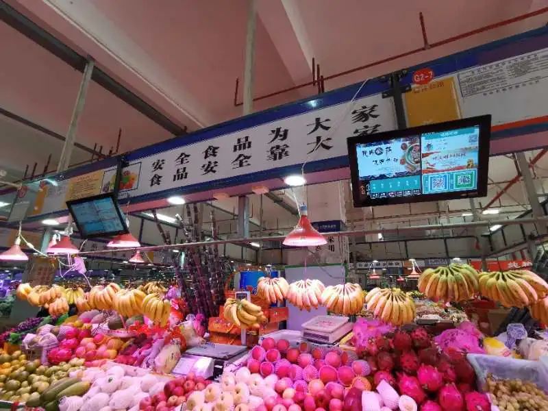 ▲实施智慧监管,证照、检测、票据、价格等信息在摊位上方的显示屏实时显示