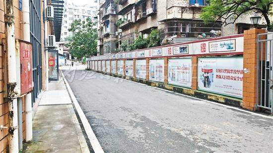 壕子口农贸市场创文标语与整洁的道路相得益彰