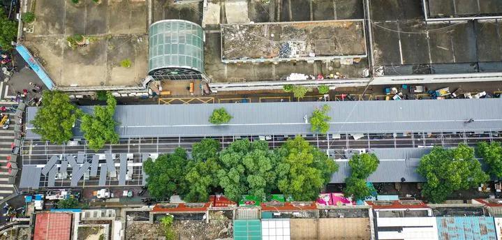 11月27日上午,记者来到万济池菜市场,看到临时搭建的钢架大棚已经完成,170多个摊位排列整齐有序。作为椒江历史最长、规模最大、辐射最广的批发零售兼营农贸市场,万济池菜市场自2008年改造后,时隔12年,正式启动整体提升改造工程建设。