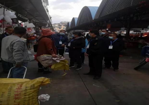 开展现场劝导。执法人员对市场沿街道路两侧摊点及市场内部摊点,逐门逐户逐摊位进行宣传、劝导、规范。要求中心农贸市场内部及和周边零摊经营、蔬菜批发等(摊点)必须在规定时限内根据自身需求自行选择到北部农贸市场、时代广场农贸市场、龙泉街农贸市场等市场管理方的指定位置摆摊经营。并服从有关部门管理,依法依规经营。
