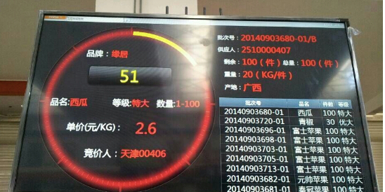 07. 远在千里之外的天津海吉星物流园内,同样也有一个电子拍卖大厅,屏幕上正在同步播放着老李家的苹果信息。