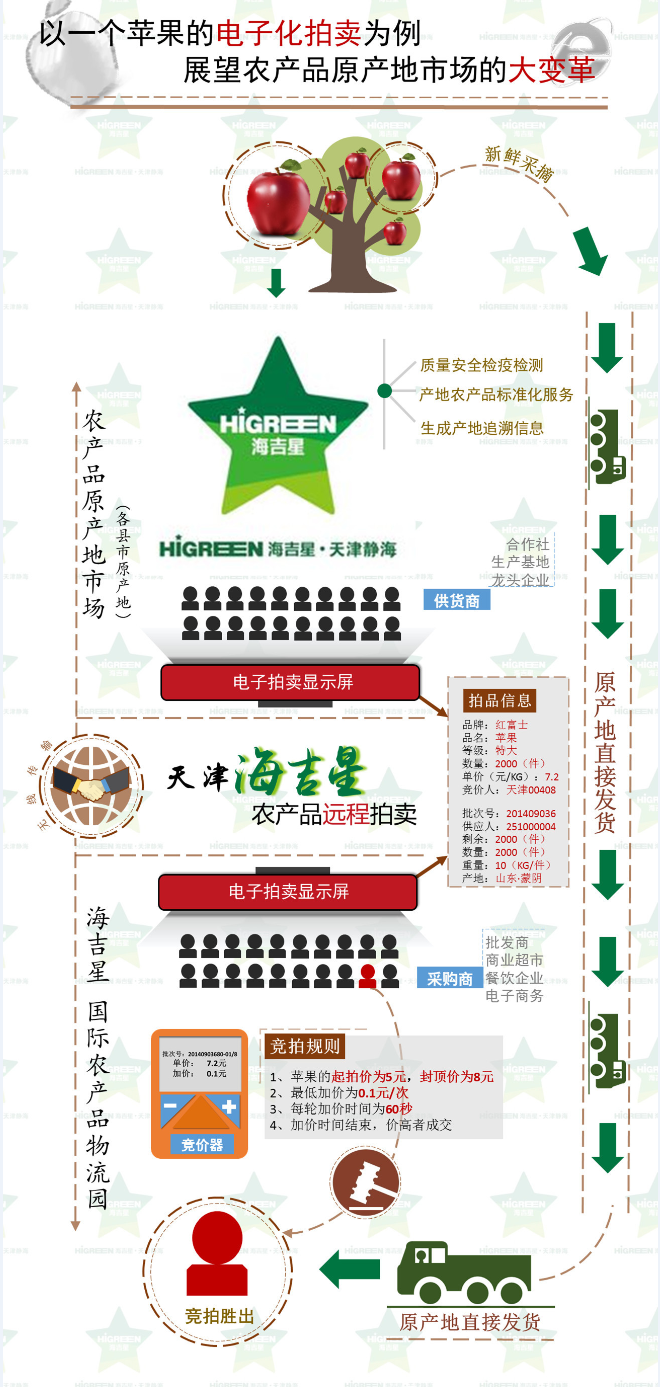 一句话,天津海吉星一边打造国内农产品南北大流通中心,一边打造国际农产品进出口贸易中心,而电子拍卖系统则可以借助互联网编制一张网络全国原产地的大网,逐渐实现全国农产品现代智能化物流中心的终极布局。