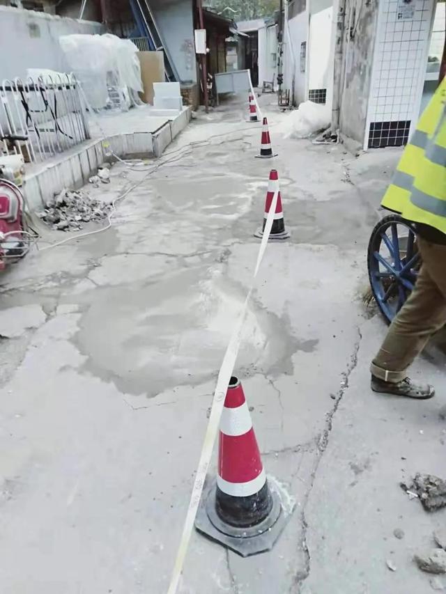 18日上午,在荷花池集贸市场附近,记者看到巷口处的路面已经有工人正在修补,其他破损待修的路段,工人也已设置了警示标示。