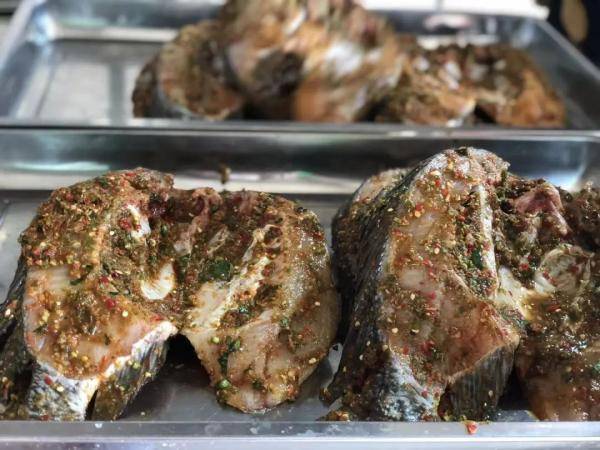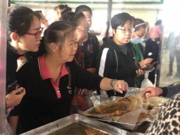 在水果摊位后面,飘着一阵很香的味道,回头一看已经排起了长队,滋啦啦的烤鱼正冒着香气,隔壁还有热气腾腾的烤鸭,丰富的卤菜,让人食欲大增!