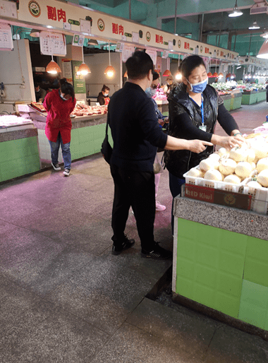之前走访时,发现配戴口罩不规范的问题,本次回头看绝大部分商户和消费者自觉戴好口罩,只有极个别消费者的口罩挂在下巴上。市场内外的公益广告依然很少,宣传氛围不够浓烈。