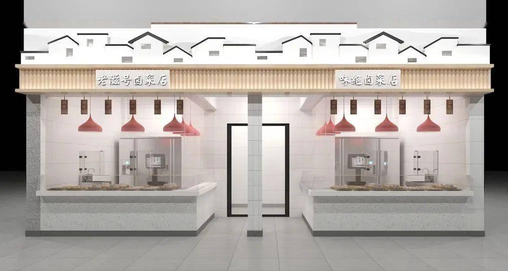 肉摊统一专业的红色照明灯,突显出肉质更加鲜嫩。卤菜房有专门的门头、装修统一风格,更具衢城风味。