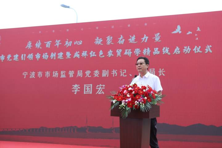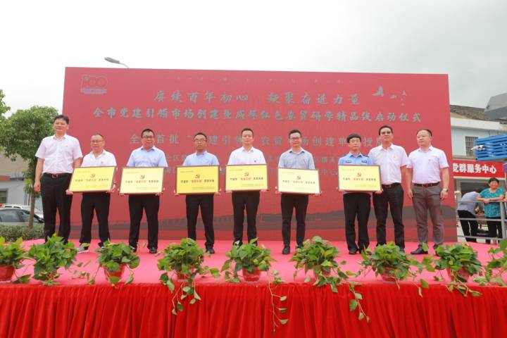 启动仪式由宁波市委组织部、宁波市市场监管局主办,鄞州区委组织部、鄞州区市场监管局、鄞州区咸祥镇党委承办,咸祥菜市场协办。现场对从宁波全市范围内选拔出来的北仑区星阳菜市场、鄞州区咸祥菜市场、鄞州区横溪菜市场、镇海区南街菜场、慈溪市浒山西门市场、象山中心菜市场等首批6家“党建引领”农贸市场创建单位进行了表彰,并对14个农贸市场党员经营户代表进行了授牌。“党建引领”农贸市场代表和农贸市场党员经营户代表分别作表态发言,表示今后将主动亮身份、讲诚信、守承诺,为市民提供更优质的服务。