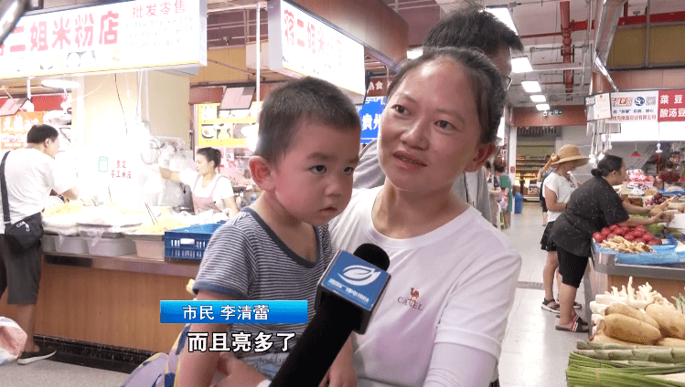 记者在多又多农贸市场看到,一排排摊位整齐规范,瓜果蔬菜、鲜肉水产等有序摆放,地面干净整洁,来往的市民在悉心挑选着需要的商品。在历经三个多月的时间,多又多农贸市场旧貌换新颜,不仅外观更加整洁靓丽,内部也变得宽敞有序,在摊位设施、智能设备、通风照明、排水排污等方面都得到明显提升。