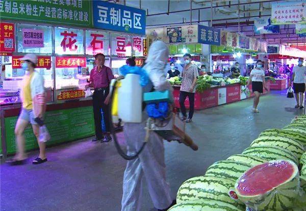 “进入农贸市场请戴好口罩,出示健康码和行程码,并配合测温,在市场内保持距离,不要聚集……”在县城贵竹农贸市场和百花农贸市场等五家市场,随处可见疫情防控宣传标语及海报,工作人员严格落实防疫检查,逐一对进入市场的人员进行测量体温、查验健康码和行程码等,并对市场内的公共区域定时防疫消杀。
