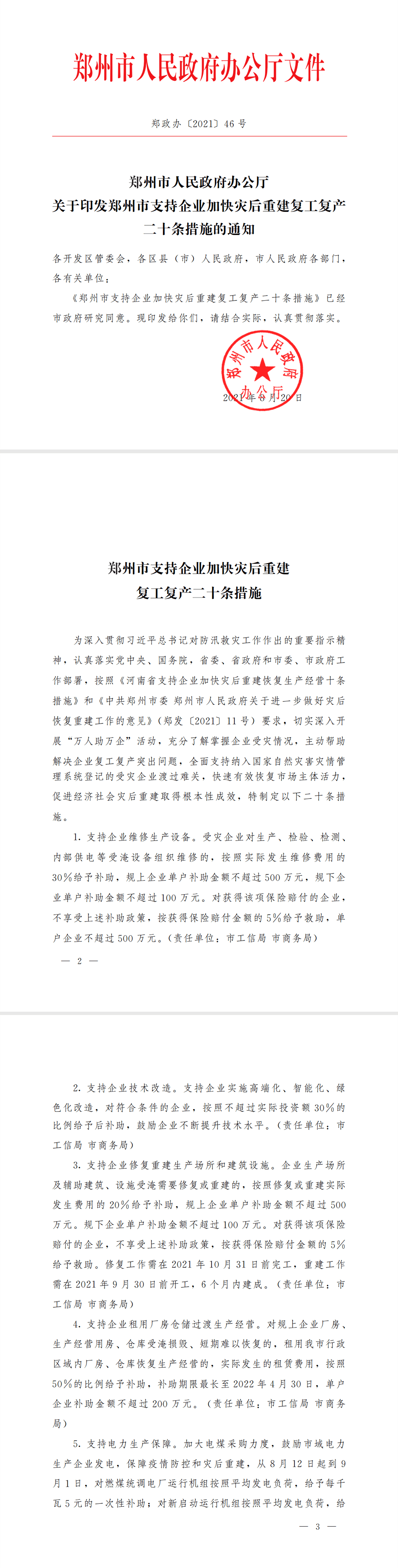 附:《郑州市支持企业加快灾后重建复工复产二十条措施》