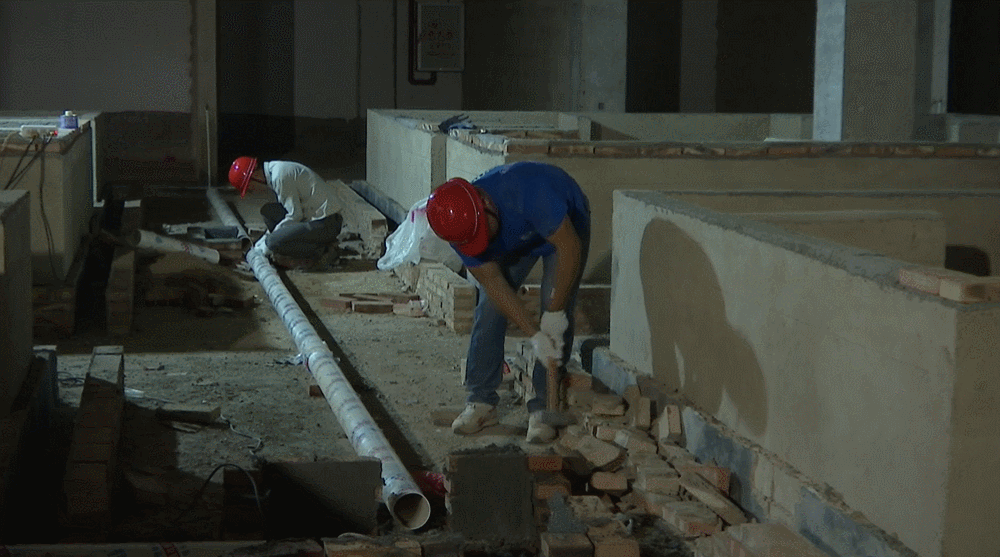 工人们在安装水管