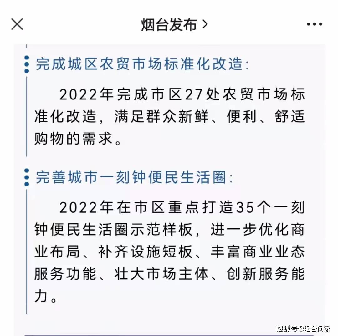 据了解2022年的目标任务是,完成城区27处农贸市场标准化改造,其中,芝罘区10处、福山区1处、莱山区6处、牟平区1处、蓬莱区2处、开发区7处。