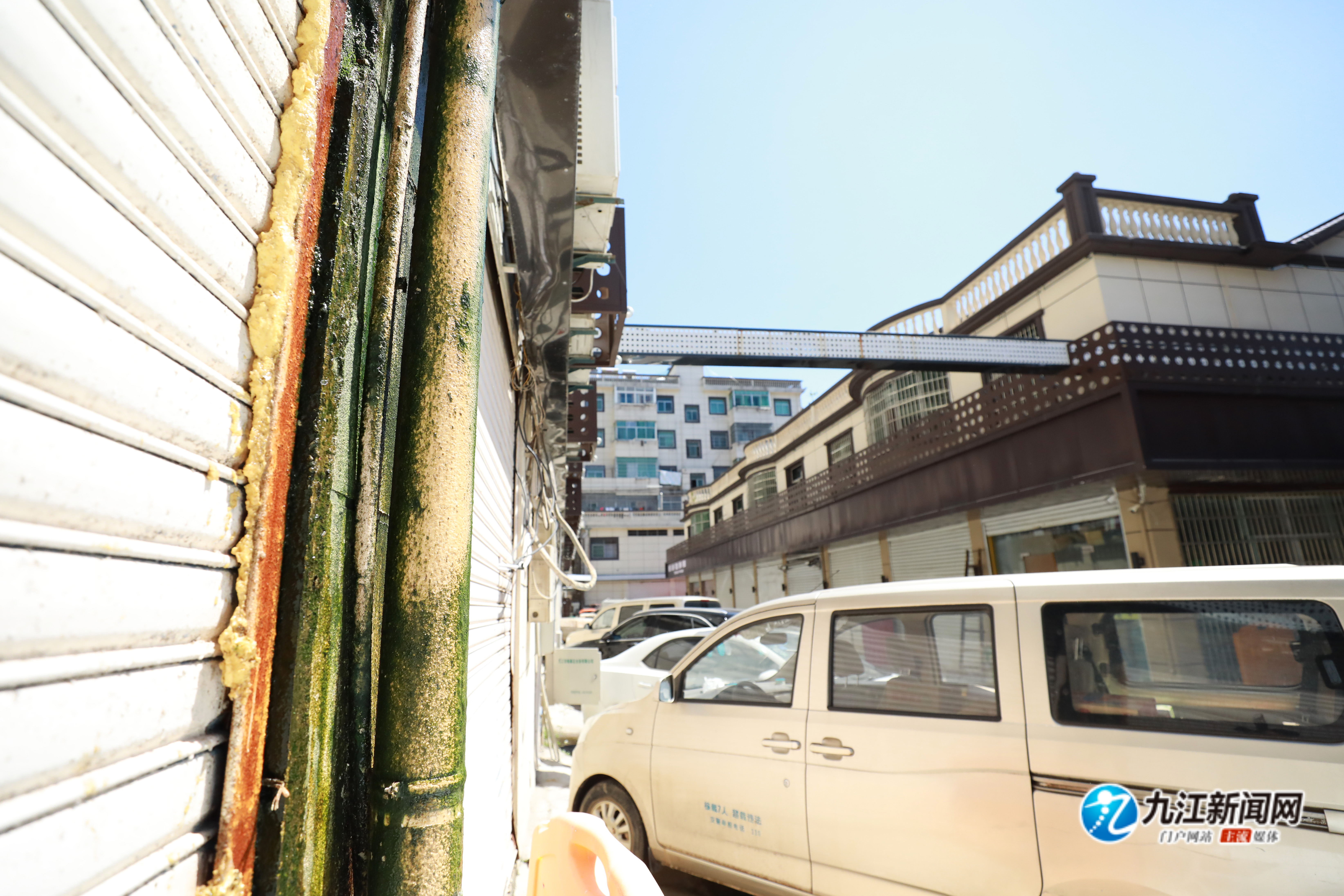 而万客汇农贸市场附近的河畔小区,则给人耳目一新的感觉。这里一改大家对老旧小区的“刻板印象”,路面干净、房屋整洁,公益广告标语随处可见,但空中仍有少量管线混乱。