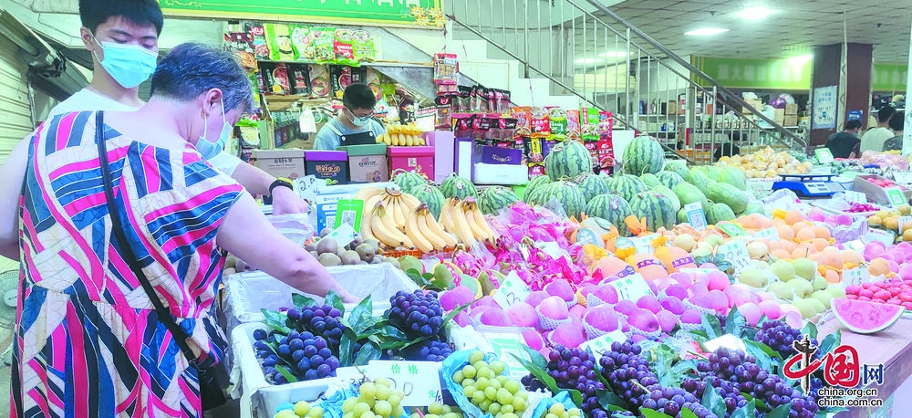 “请戴好口罩,出示健康码,并扫场所码。”在工作人员礼貌提醒后,记者进入市场,映入眼帘的是一排排宽敞的通道,通道上方是醒目的“蔬菜区”“水果区”“水产区”等区位指示牌。缤纷靓丽的装修风格,井然有序的摊位,消防系统、水电线路等硬件设施全面完善。