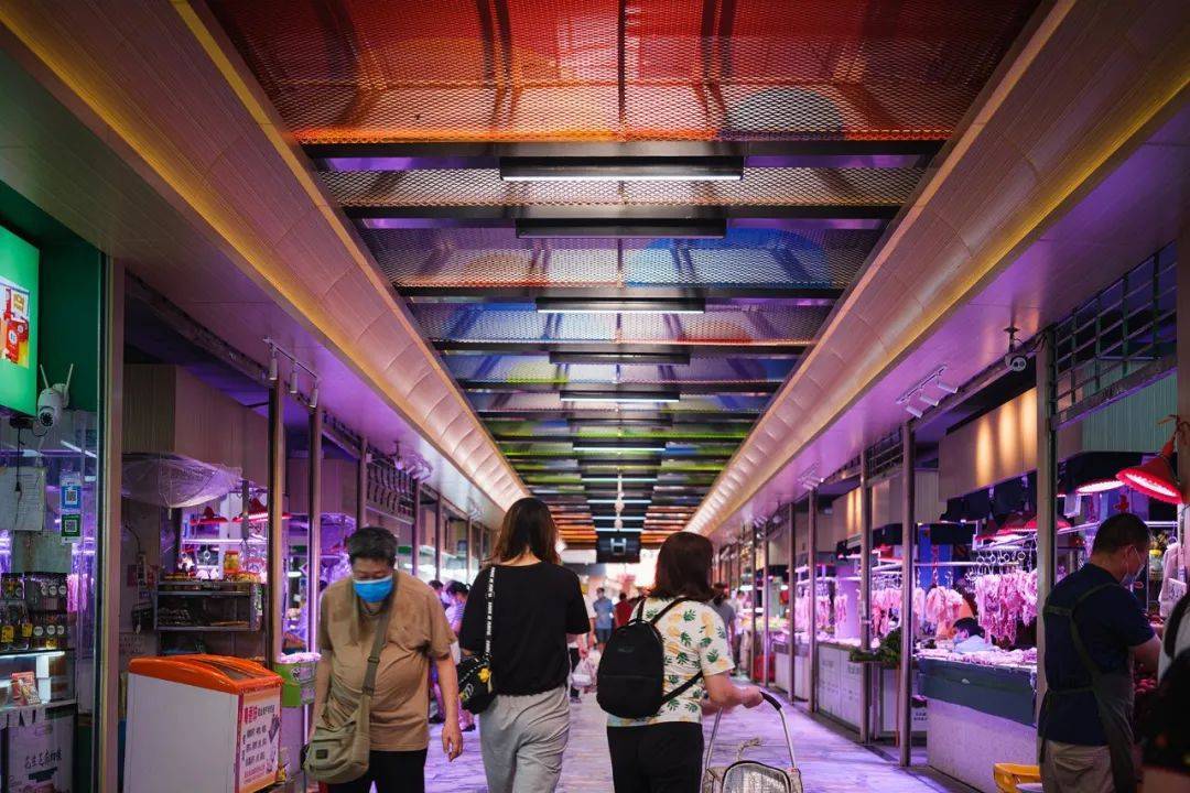 随着城市更新浪潮席卷了越来越多的地方,身边的菜市场也陆续开始改头换面。改造过的菜市场,呈现两种趋势。一种是以香港本湾市场、苏州双塔市场为代表,竭力消除传统菜市场“脏乱差”的感官印象,外部采用文艺时尚的设计,内部则追求简约干净,菜品码放整齐,让人能在一种很轻松愉悦的环境中购物。同时,新增的电子屏幕,让人们能看到所有的菜价,相对应的店主姓名,和信用评级等信息,给人们生活增添了很多现代化的便利。