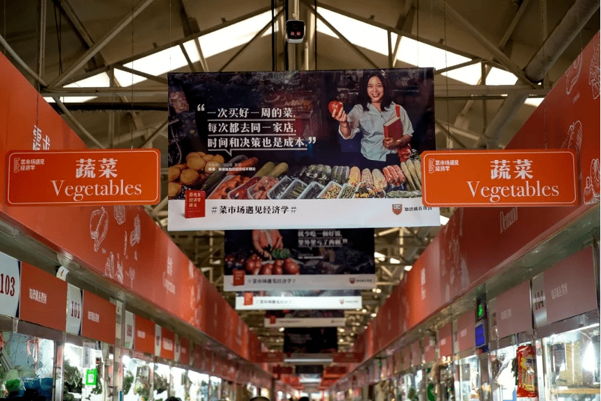 知识平台得到2018年就在北京三源里菜市场打造了一场以“菜市场经济学”为主题的线下营销活动。用菜场老板们拍摄的宣传海报,让经济学家的名字和摊位玩起联名,让原本很“乡野”的空间也迸发出知识的力量,让平日里沉浸在琐碎生活中的普通人都能在最日常的生活中体会到用经济学思维的魅力,不失为一种成功的尝试和体验。