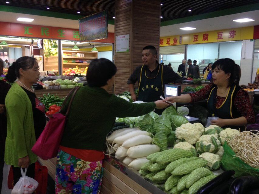 蔬菜摊上的秤暗藏玄机,它直接与菜场中央电脑连接,每卖一次蔬菜,数据会自动传输到中央电脑里;猪肉摊的摊主人手一张IC卡,大清早去批发市场进货时要刷这张卡,回来交给菜场管理者,如此“卡卡对接”,猪肉的“前世今生”在电脑里一目了然;豆制品摊位前,每个摊主的进货单上都有了二维码,扫一扫,进货单位、资质、联系人清清楚楚……昨天是长假最后一天,记者一早扎进鲁班路上的江南菜场,瞧见大数据时代下的上海菜场新气象。